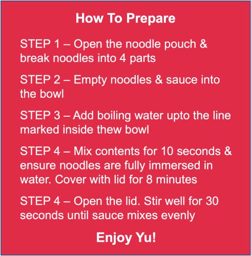Prepared using 100% natural ingredients our ready to eat cup noodles require only 8 minutes to prepare by simply adding hot water.