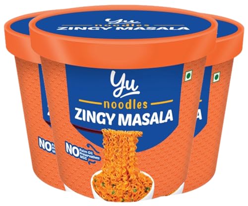 Yu Foodlabs Zingy Masala Cup Noodles-Pack of 3-100% Veg-No Preservatives-100% Natural Ingredients-Ready to Eat Instant Noodles-240 Grams (80G3)-Yu