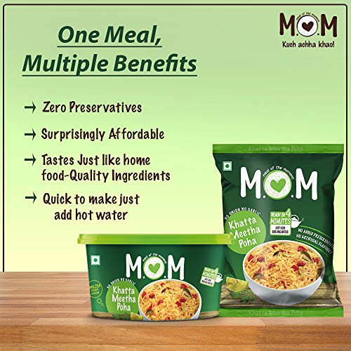 Kick start your day with a healthy nutritious breakfast! #Just add hot water The fluffy and soft texture of mom instant khatta meetha poha is sure to delight no added preservatives or artificial flavours. Pure in every way. Beta i love to cook for you don't forget to check my complete range of instant foods manufactured in a 100% vegetarian facility.