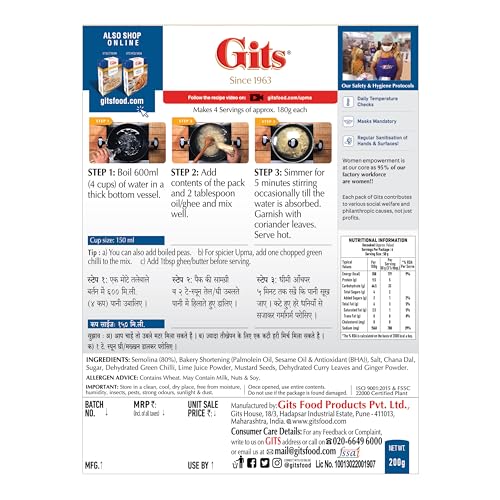Its a clean eatable upma better thab other products in the market, however its price is much nrly (30%) more than others available in the maket... 200gm are @Rs 50 more or less where as this is Rs 70....