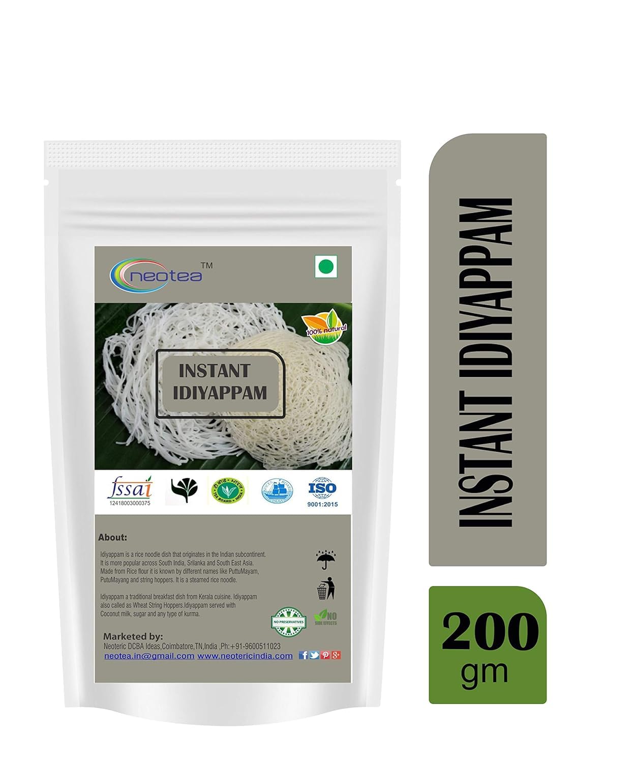HomeGroceryInstantPoha & UpmaNeotea Ready To Cook Instant Idiyappam 200Gm Convenient Authentic Gluten-Free South Indian Dish Perfect for Breakfast or Dinner
