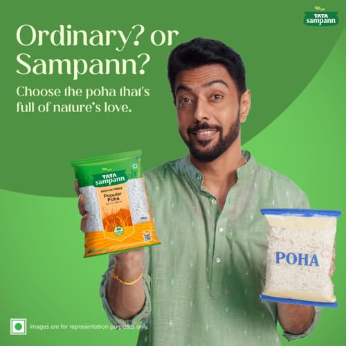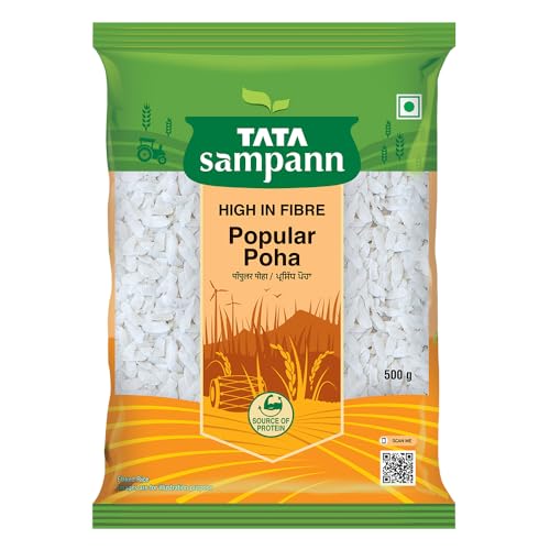 Enjoy mornings full of taste & nutrition with Tata Sampann Popular Poha. Poha is a form of beaten/flattened rice with a dash of peanuts and curry leaves that is widely consumed & enjoyed in North India. It is a rich source of fibre which is known to be an essential part of a healthy & balanced diet. Relish a delicious & nutritious bowl of Tata Sampann Popular Poha as it is also a good source of protein which is known as an important building block for the body. Tata ensures that only the best-sourced rice paddy goes into making the poha giving you a great-tasting and nutritious snack. You can now enjoy the original Indian breakfast whenever you crave the deliciousness in breakfast with evening tea or to satisfy midnight cravings. USAGE INSTRUCTIONS: Wash & strain one cup of Tata Sampann Popular Poha and keep aside. Heat 2 tbsp of oil and splutter ½ tsp mustard and ½ tsp cumin seeds saute with 1 split chilli and 1 small chopped onion till it turns light pink in colour. Add 1/4th tsp turmeric powder salt as per the taste. Add poha mix and cook well for five minutes. Serve! STORAGE INSTRUCTIONS: Transfer contents to an airtight container after opening. Store in a cool and dry place.
