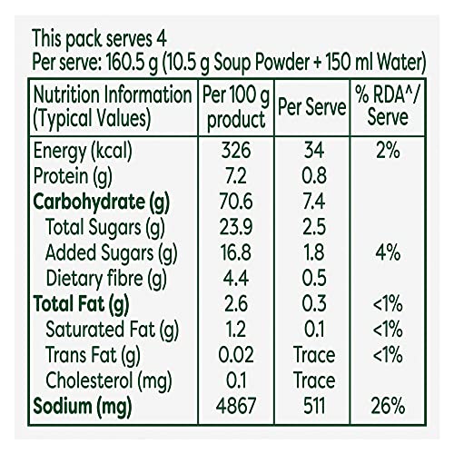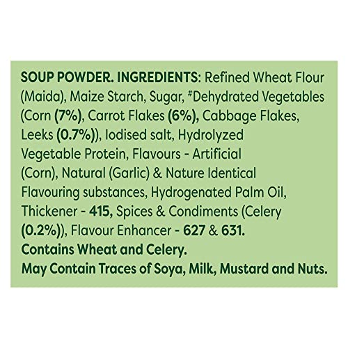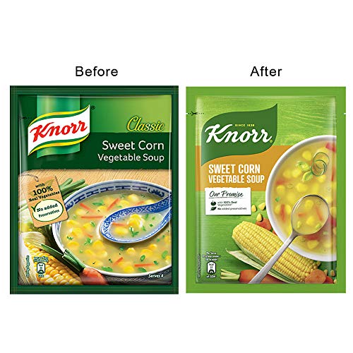 Knorr has hand-picked the best quality vegetables and mixed it with spices to make delicious Knorr Sweet Corn Vegetable Soup. A perfect blend of corn carrots cabbage gives it its lip-smacking taste and perfect consistency and is a perfect way to get your children to eat their vegetables. Made with 100% real vegetables and no added preservatives this soup is ready in three simple steps. So now enjoy Restaurant like delicious Soup at home.Knorr Soups range comprises of 11 delicious flavours of 4 serve soups and 7 flavours of Cup-a-soup. Great taste is in our Nature! Knorr has gone to great lengths to ensure a perfect blend of ingredients and consistency that give you Restaurant like Soup at home.About Knorr:Just like you we love everything about food because no delicious meal is cooked without love. Love for carefully selected ingredients flavours and spices or the aroma of dinner wafting through your home. Love for the people you feed everyday; your family and friends relatives and guests the people that matter to you the most. With Knorr as your cooking partner you can serve your loved ones nutritious and flavourful meals at home. Soup Fun Fact - The word 'soup' is of Sanskrit origin! It is derived from the su and po which means good nutrition..