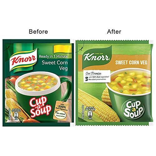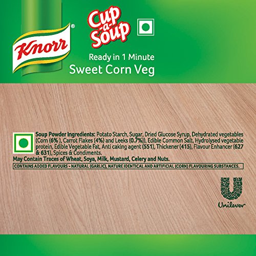 Knorr Sweet Corn Veg Soup - is a soup made of creamed sweet corn and fresh vegetables like carrots celery and spring onions giving the soup both sweet and savoury taste.
