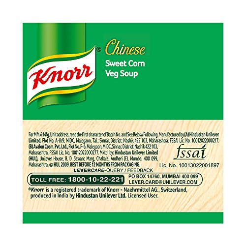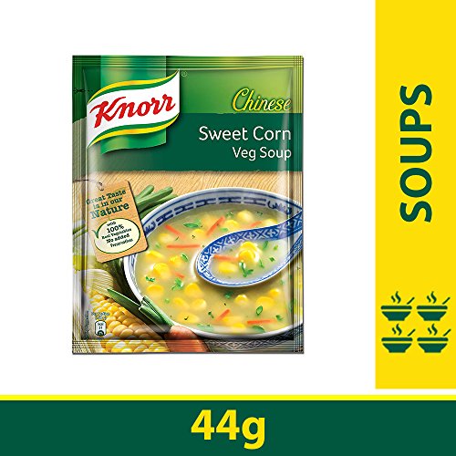 Knorr has hand-picked the best quality vegetables and mixed it with spices to make delicious Knorr Sweet Corn Vegetable Soup. A perfect blend of corn carrots cabbage gives it its lip-smacking taste and perfect consistency and is a perfect way to get your children to eat their vegetables. Made with 100% real vegetables and no added preservatives this soup is ready in three simple steps. So now enjoy Restaurant like delicious Soup at home.Knorr Soups range comprises of 11 delicious flavours of 4 serve soups and 7 flavours of Cup-a-soup. Great taste is in our Nature! Knorr has gone to great lengths to ensure a perfect blend of ingredients and consistency that give you Restaurant like Soup at home.About Knorr:Just like you we love everything about food because no delicious meal is cooked without love. Love for carefully selected ingredients flavours and spices or the aroma of dinner wafting through your home. Love for the people you feed everyday; your family and friends relatives and guests the people that matter to you the most. With Knorr as your cooking partner you can serve your loved ones nutritious and flavourful meals at home. Soup Fun Fact - The word 'soup' is of Sanskrit origin! It is derived from the su and po which means good nutrition.