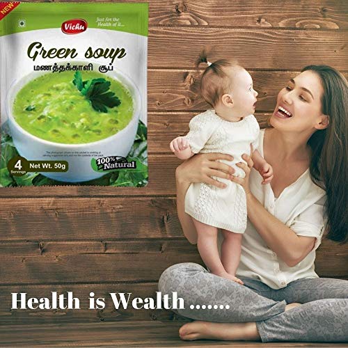 Vichu presents this green soup which is made of solanum nigrum (manathakkali) garlic pepper onion and cumin seeds. Best before 6 months from the manufacturing date. We have taken utmost care in cultivating the herbs and drying it without losing its natural color and nutrients. No added preservatives colors sugars or additives. WAY4ORGANIC Herbs are dried in-house under a controlled atmosphere and never sun-dried or oven-dried. WAY4ORGANIC Herbs are packed in resealable zip-lock pouches. You'll find only the best of quality herbs from the house of WAY4ORGANIC. MADE IN COIMBATORE.WAY4ORGANIC are certified by the United States Department of Agriculture FSSAI Food Safety and Standards Authority of India HALAL India. All the herbs are grown by our farmers naturally with no added chemical fertilizers. They are cleaned and only the parts with medicinal benefits are separated and dried using scientific approach at low temperature.