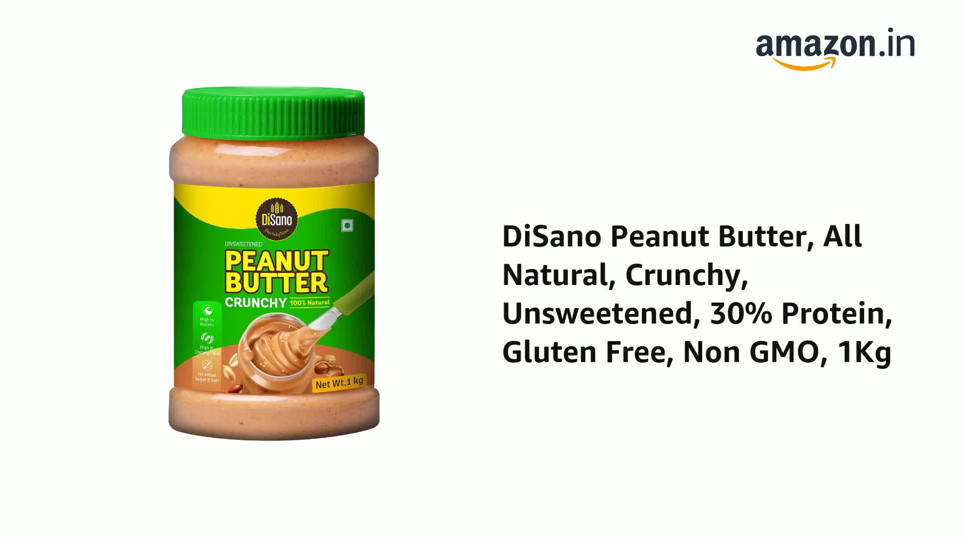 DiSano Peanut Butter, All Natural, Crunchy, Unsweetened, 30% Protein, Gluten Free, Non GMO, 1Kg