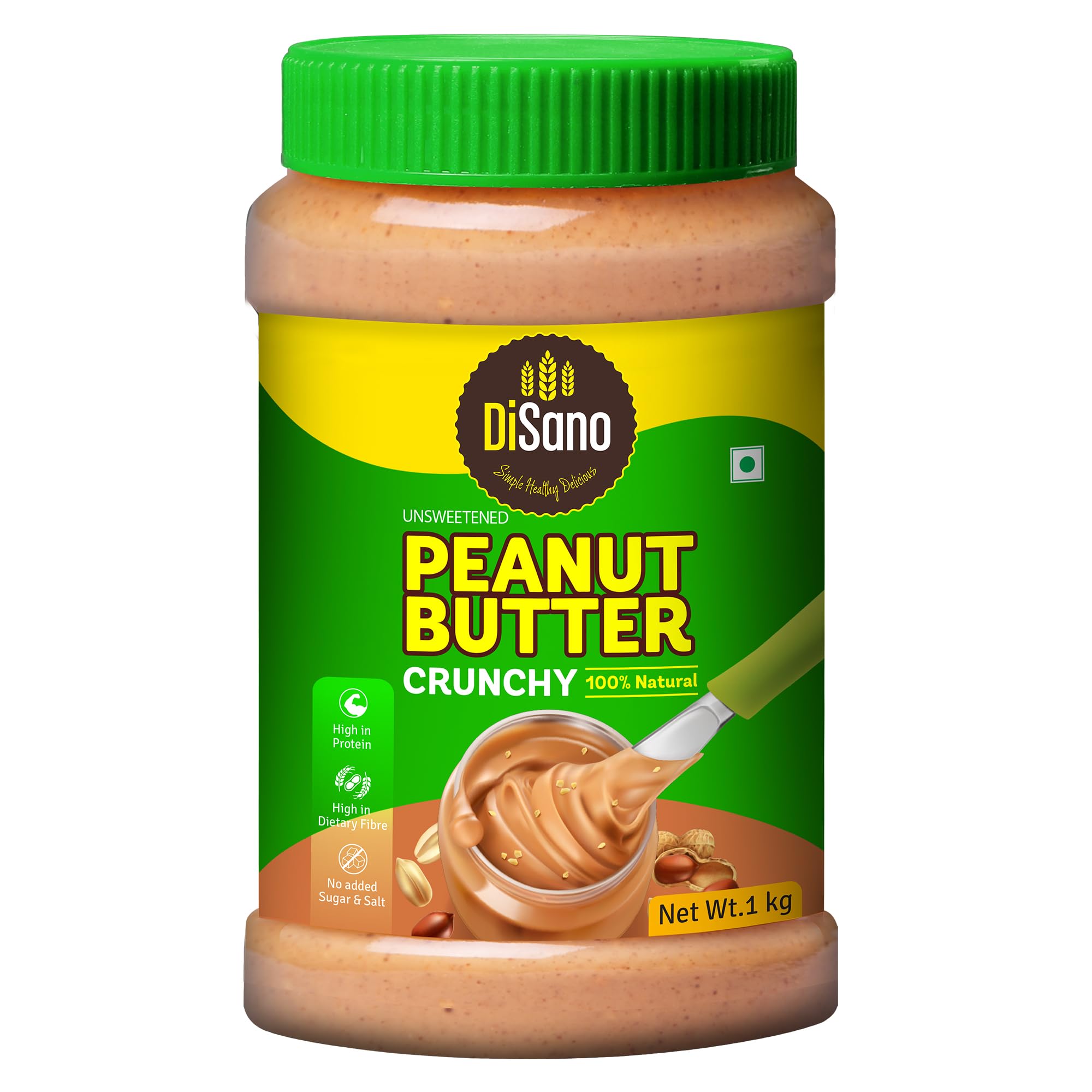 DiSano Peanut Butter, All Natural, Crunchy, Unsweetened, 30% Protein, Gluten Free, Non GMO, 1Kg