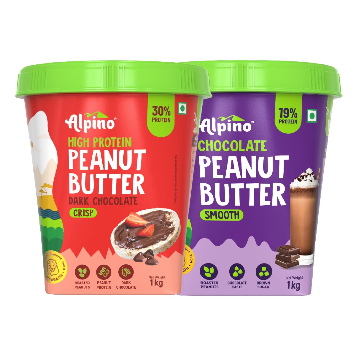 Experience the perfect blend of nutrition and indulgence with ALPINO High Protein Chocolate Peanut Butter. This pack of two features Chocolate Peanut Butter Crisp and Chocolate Peanut Butter Smooth offering a deliciously creamy and crunchy texture for every taste. Key Ingredients: Roasted Peanuts: Premium quality peanuts for rich taste and nutrition. Chocolate Paste: Adds a delectable chocolatey flavor. Brown Sugar & Sea Salt: A natural sweet and salty touch for balanced flavor. Key Features: 30g Protein per serving: Perfect for muscle recovery and energy. Gluten-Free: Suitable for those with dietary restrictions. Plant-Based: 100% vegan-friendly for a healthier choice. Versatile Usage: Enjoy it as a spread in smoothies or straight from the jar!