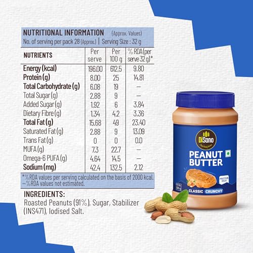 DiSano Peanut Butter, Crunchy, Classic, 25% Protein with Vitamins & Minerals, 924 grams