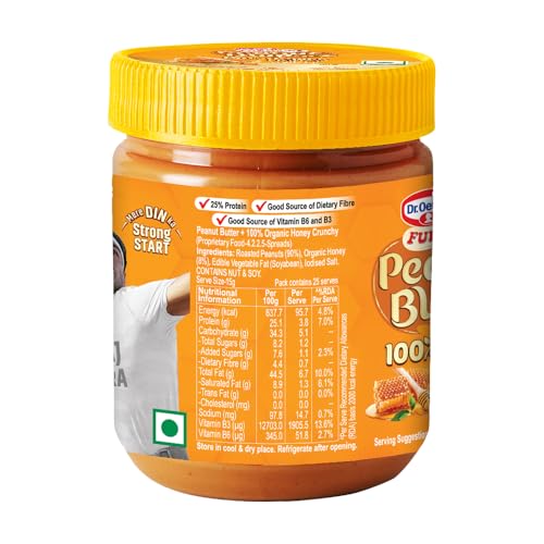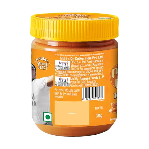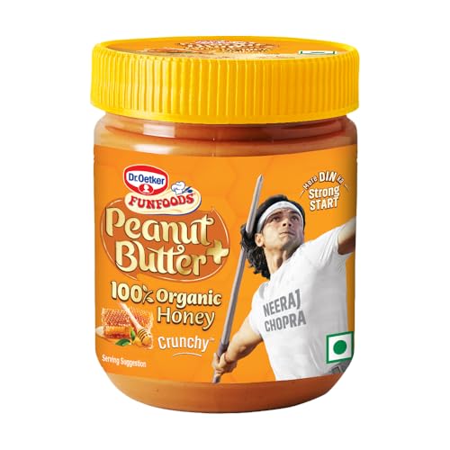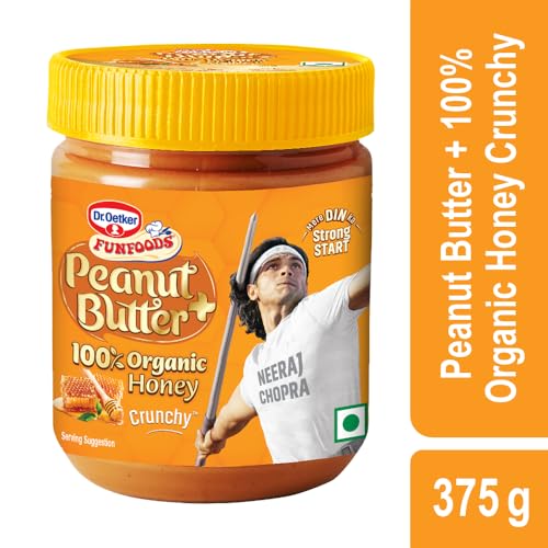 Dr. Oetker FunFoods Peanut Butter+ 100% Organic Honey Crunchy | 375g | No Refined Sugar | Sweetened With Honey | Rich in Protein Vitamin B6 & B3 | Breakfast Spread