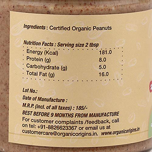 Organic Origins Peanut Butter (Smooth Unsweetened) 200 Grams