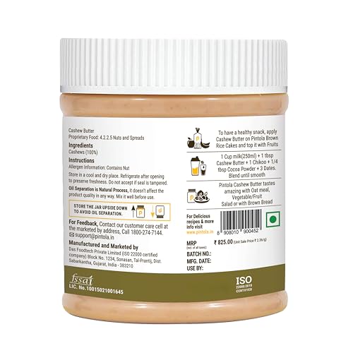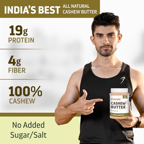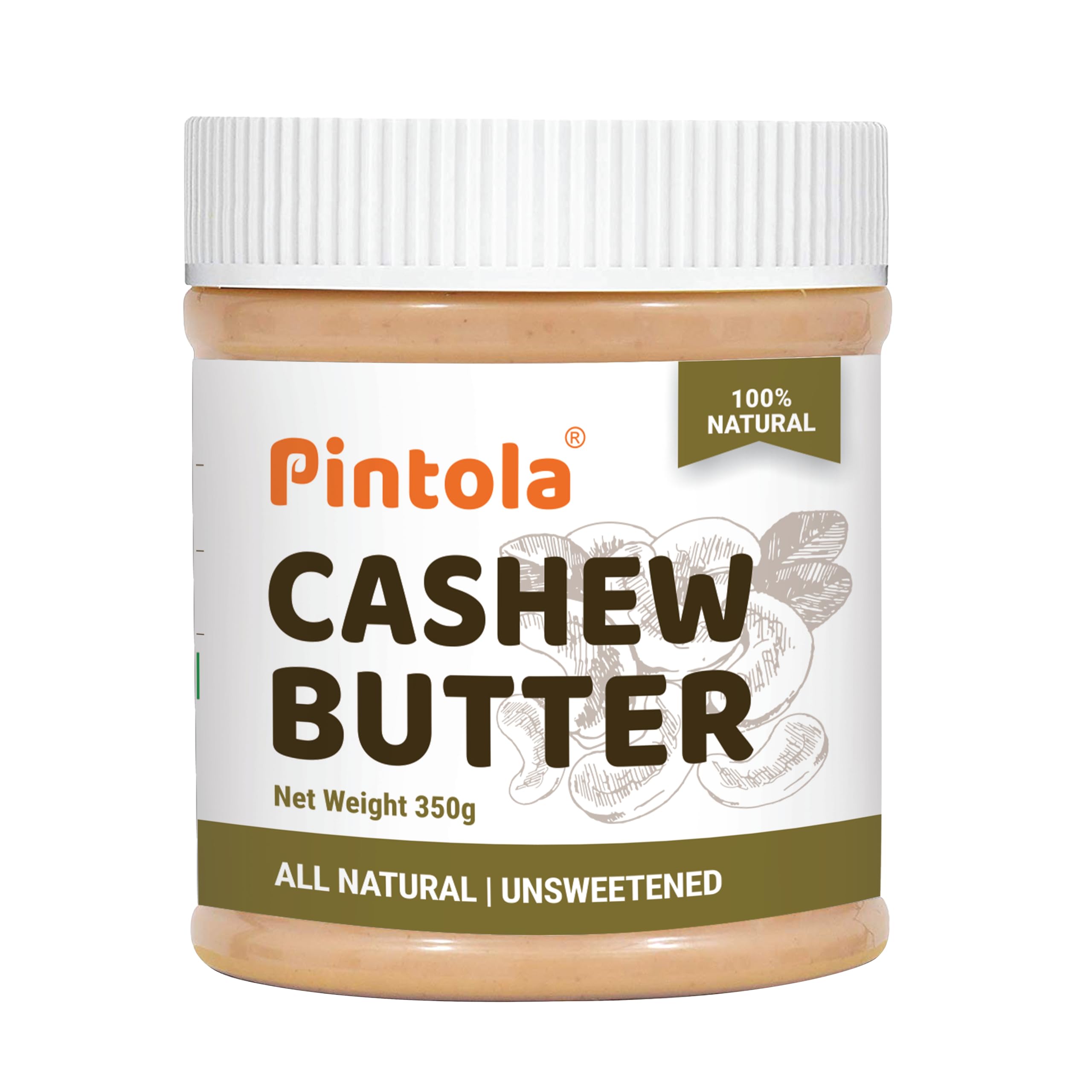 Pintola Cashew Butter 350g - All Natural Vegan Cashew Butter, Gluten Free & Cholesterol Free, Unsweetened for Bread Spreads, Made with Fresh Cashews, Source of Fiber & Protein