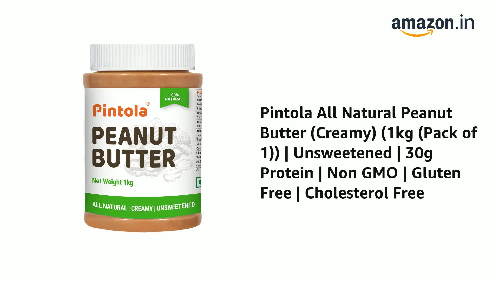 Pintola All Natural Peanut Butter (Creamy) (1kg (Pack of 1)) | Unsweetened | 30g Protein | Non GMO | Gluten Free | Cholesterol Free