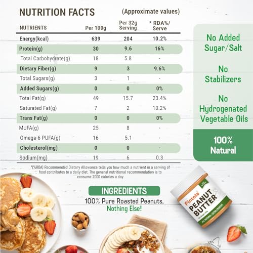 Do you like crunchy over creamy? Try this extra crunchy product from pintola. Pintolas all natural peanut butter is made up from the finest grade fresh crunchy and nutritious peanuts from an iso 22000 haccp and brc (european standards) certified and fssai approved factory. This product is the purest form of peanut butter and we specially introduced for gym goers dieters and joggers. Keep in your bag for getting instant energy anywhere anytime. All natural peanut butter is an unsweetened and loaded with protein fibre and good fats. Note: there may be oil separation on top of the jar as there is no stabilizer in the product. Please stir it back in every time you use. Try to finish the peanut butter within two months after the opening seal.