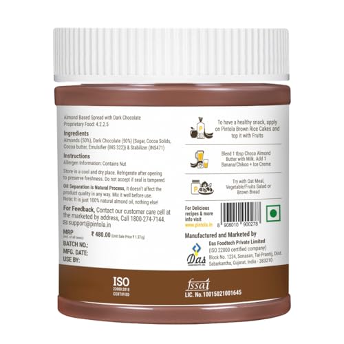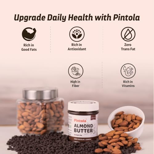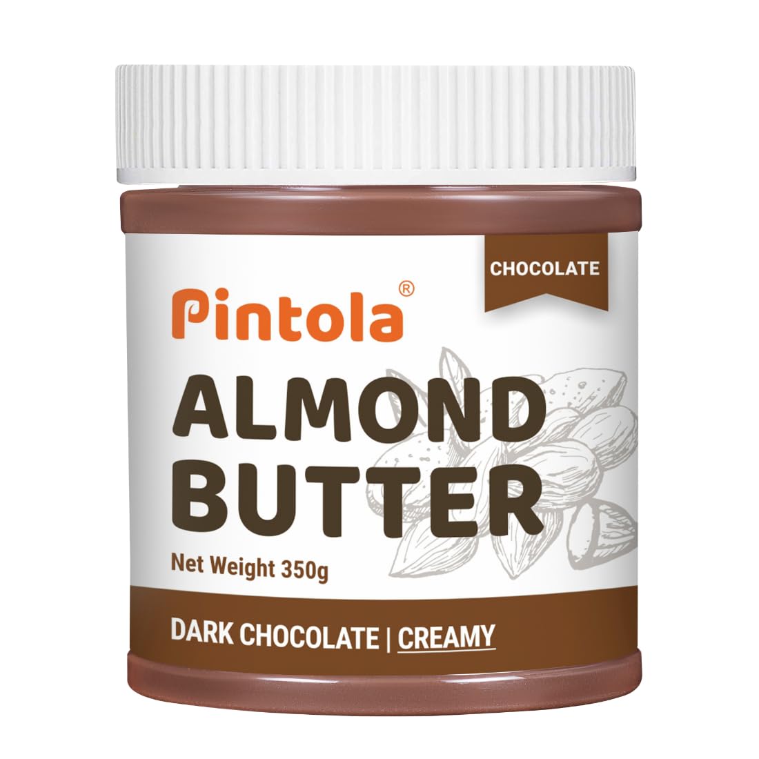 Pintola Almond Butter Dark Chocolate Creamy 350g, | High Fiber | Smooth | Gluten & Cholesterol Free | 14g Protein | Made with dark chocolate & fresh almonds