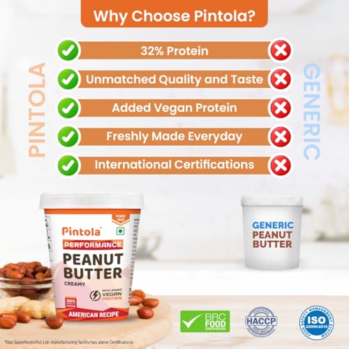 HomeGroceryFlavorsNut & Seed ButterPintola American Recipe Performance Series Peanut Butter (Creamy) - 1kg | Vegan Protein | 32% Protein | High Protein & Fiber