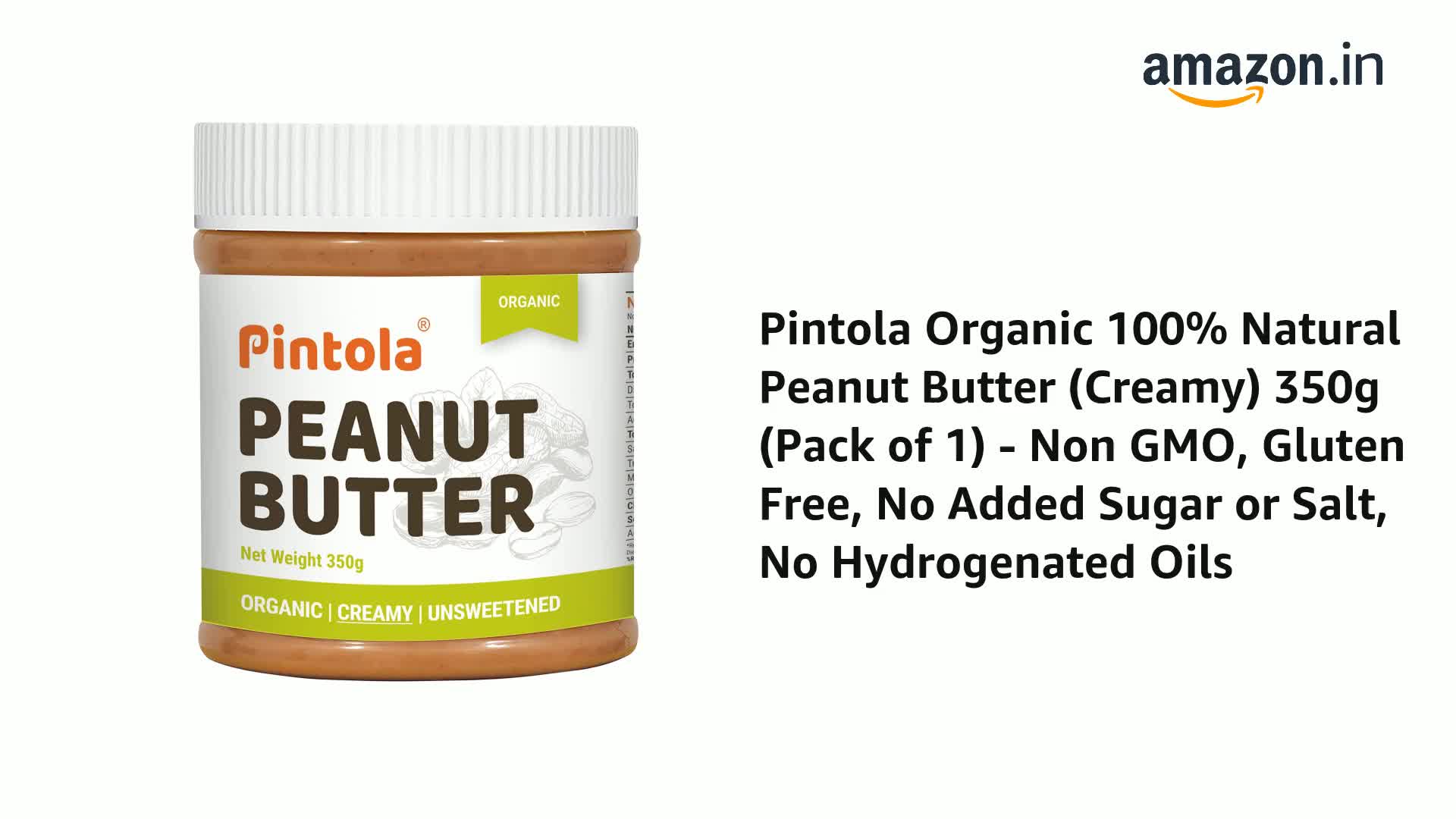 Pintola Organic Peanut Butter (Creamy) 350g (Pack of 1)