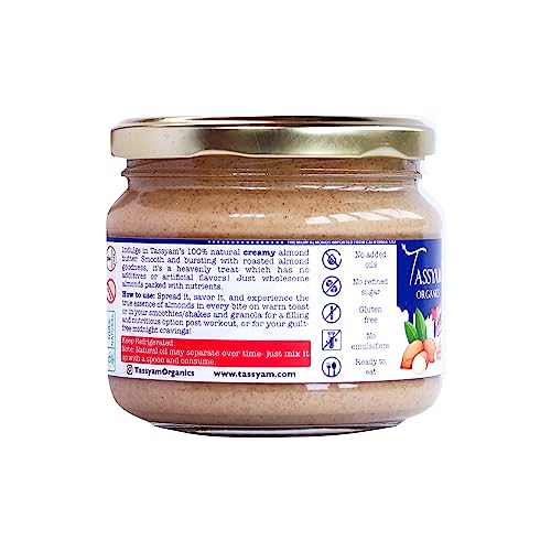 Tassyam Creamy Almond Butter 300g | Gluten Free Keto Friendly No Sugar No Oil No Preservatives