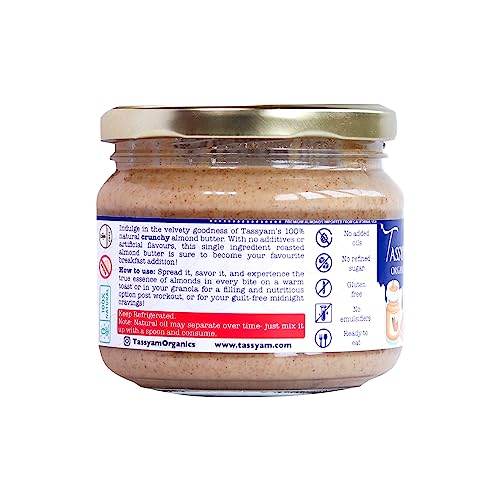 Tassyam Natural Almond Butter 300g | Gluten Free Keto Friendly No Sugar No Oil No Preservatives