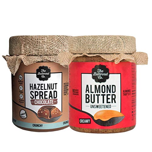 The Butternut Co. Almond Butter Unsweetened Creamy & Chocolate Hazelnut Spread Crunchy 200 gm each - Pack of 2 (No Added Sugar Vegan High Protein Keto)