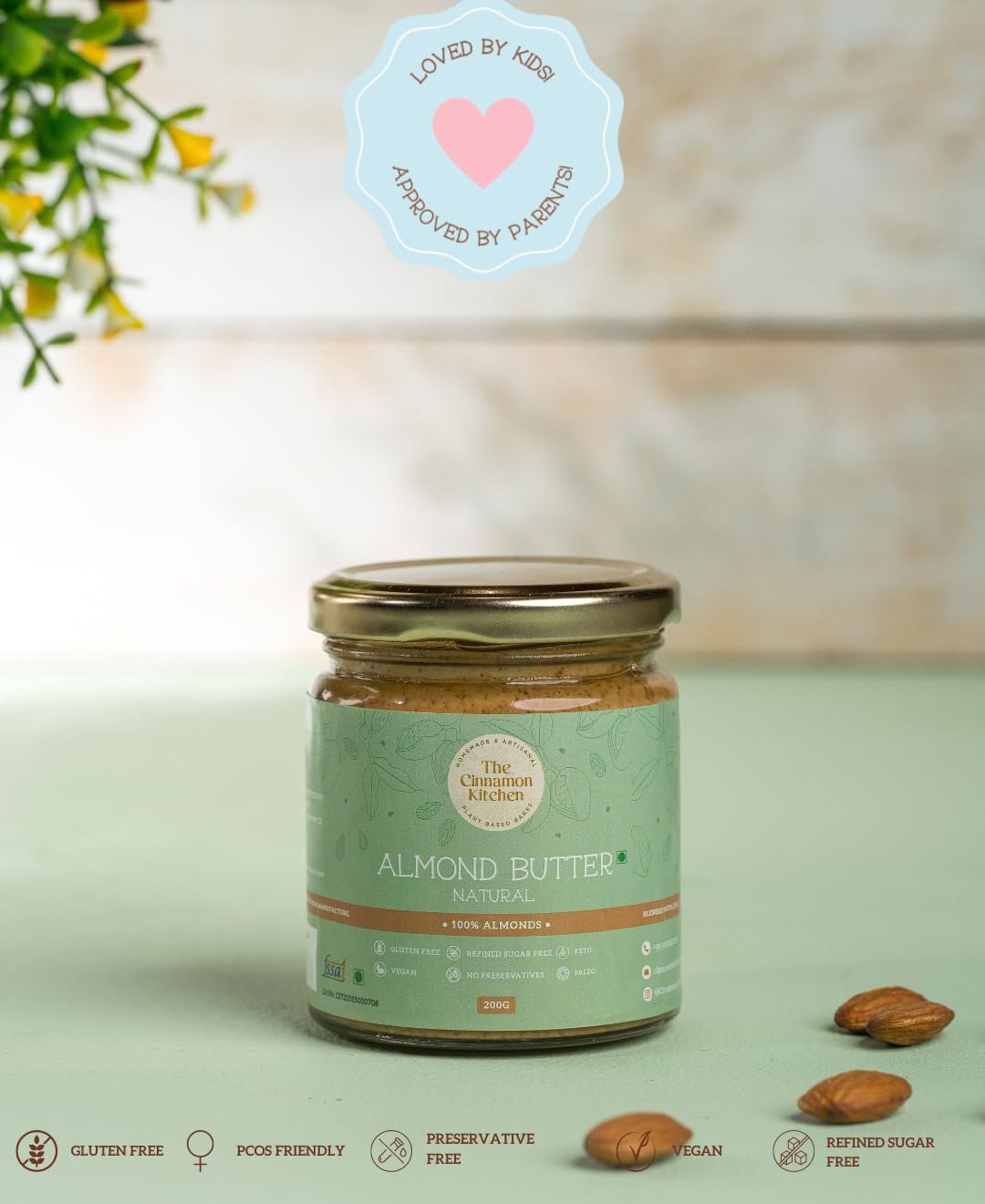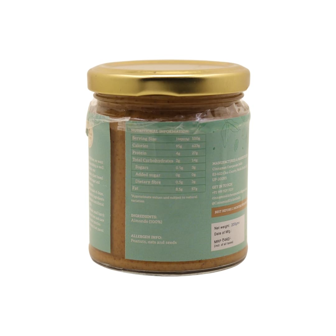 HomeGroceryFlavorsNut & Seed ButterThe Cinnamon Kitchen Almond Butter Natural 200g - Organic Vegan Gluten-Free Spread Ideal for PCOS Diet - As Featured on Shark Tank