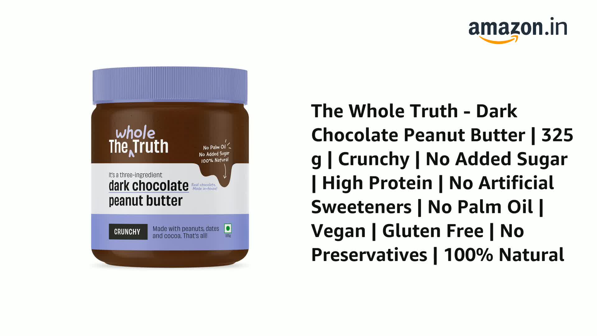 The Whole Truth-Dark Chocolate Peanut Spread|325 gram|Crunchy|No Added Sugar|High Protein|No Artificial Sweeteners|No Palm Oil|Gluten Free|No Preservatives|100% Natural Protein Source