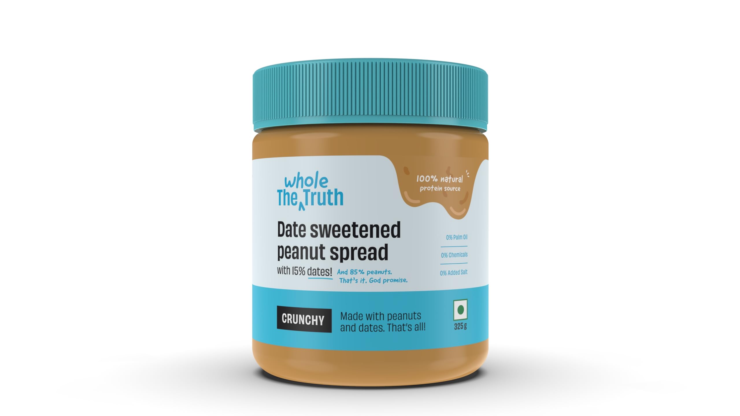 The Whole Truth - Peanut Butter With Dates (Sweetened) | 325 g | Crunchy | No Added Sugar | No Artificial Sweeteners | No Palm Oil | Vegan | Gluten Free | No Preservatives | 100% Natural