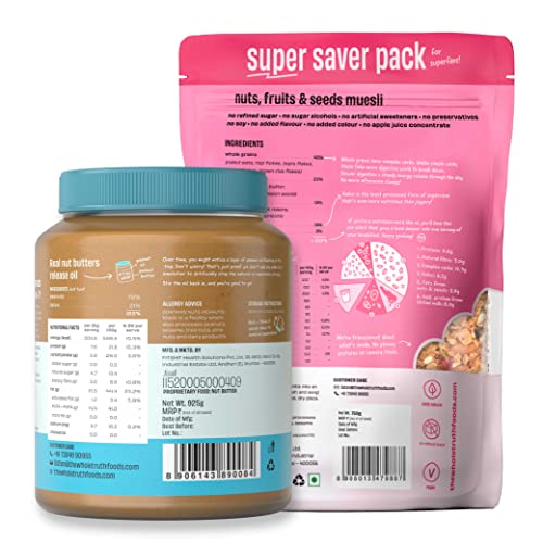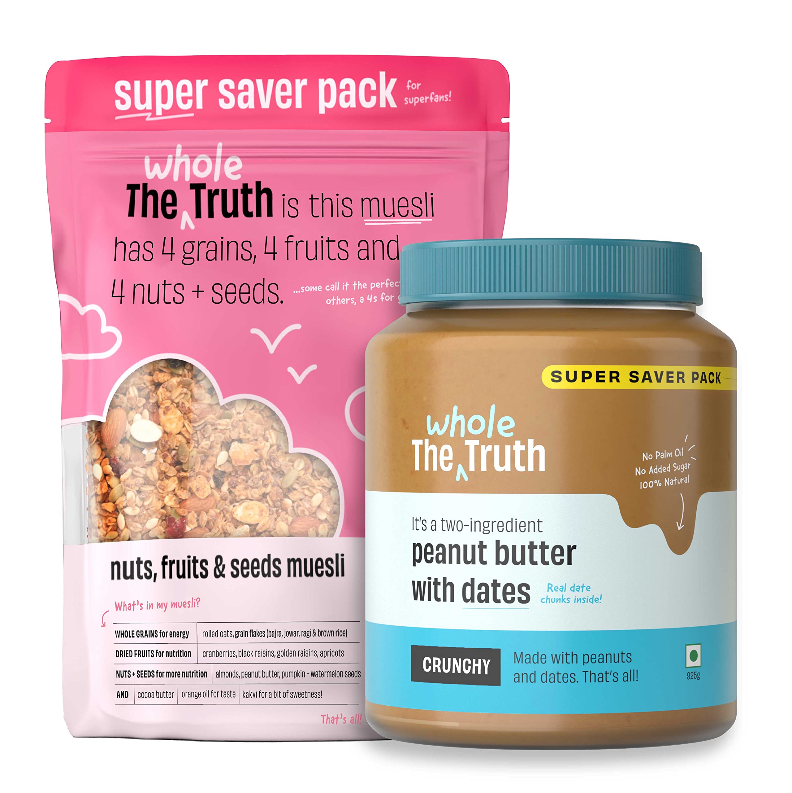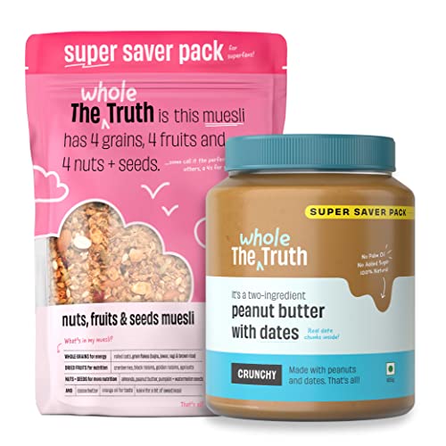 The Whole Truth - SUPERSAVER Breakfast Combo | Peanut Butter with Dates Crunchy (925g) + Nuts Fruits and Seeds Muesli (750g) | No Added Sugar | No Preservatives | No Added Flavours