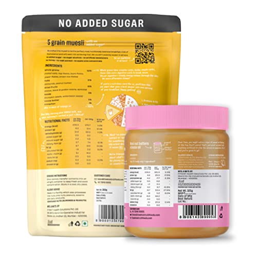 • Package Content - 1 No Added Sugar 5 Grain Muesli (750g); 1 Unsweetened Peanut Butter (925g) Crunchy
