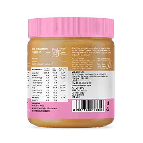 The Whole Truth - Unsweetened Peanut Butter | 325g | Creamy | No Added Sugar | No Artificial Sweeteners | No Gluten | No Preservatives | 100% Natural Protein Source