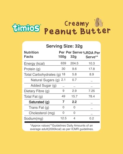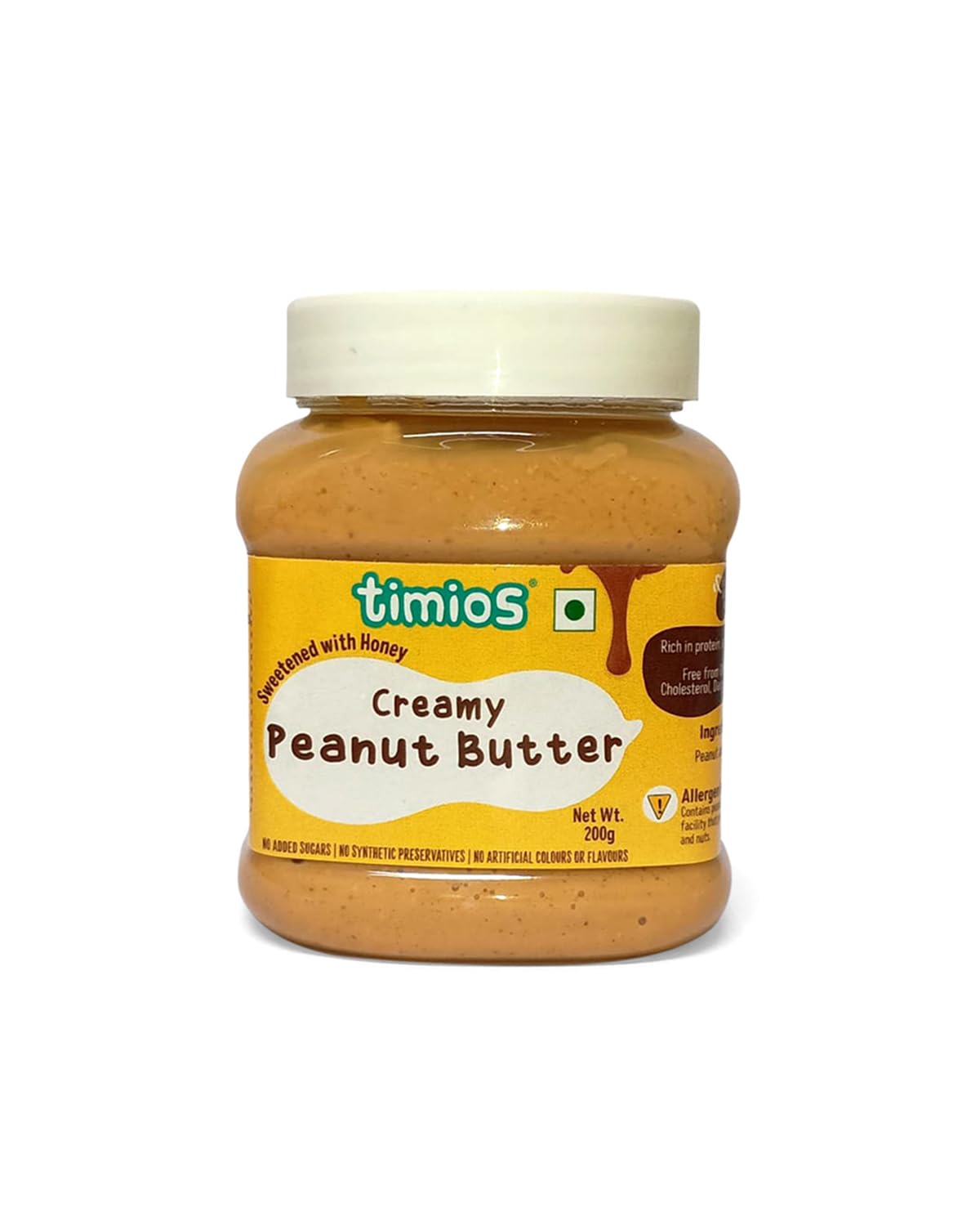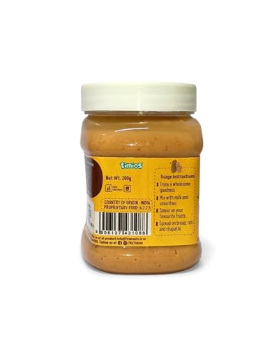 Timios Healthy Peanut Butter|Sweetened Honey|Cholestrol & Gluten Free|For Kids and Adults|200g