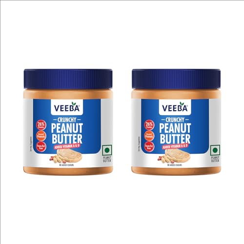 Veeba Peanut Butter Crunchy | High Protein | Naturally Gluten Free | Vegan | Trans Fat Free | No Added Preservatives | Added Calcium, Iron, Vitamin A & D | No Added Colour & Flavour | Non GMO | 340 g | Pack of 2 | Combo