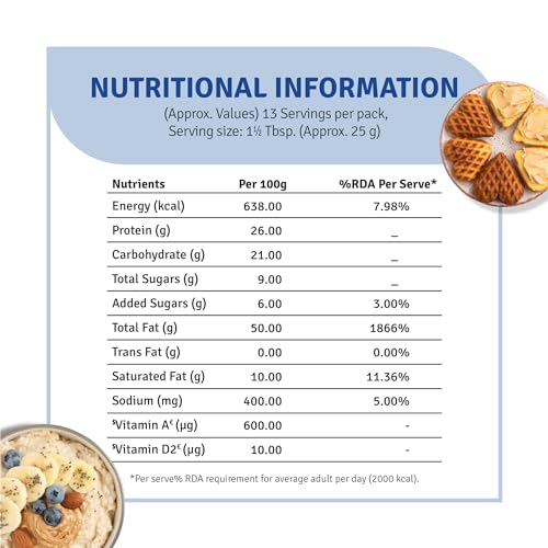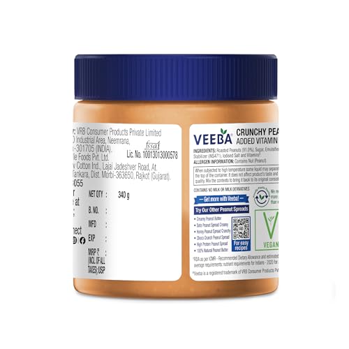 Veeba Peanut Butter Crunchy is 100% vegetarian and is made with 91% roasted peanuts. It is powered by protein and enriched with calcium iron Vit A and Vit D. Ideal for making milkshakes sandwiches.