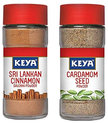 Keya Cardamom Seed Powder 50gm | Only Seeds No Husk | Elaichi Powder | Exotic SpicesCardamom also known as Elaichi is one of the oldest spices used in the world and originated along the Western Ghats in South India. KEYA Cardamom Seed powder is ground to perfection and packed in easy to use and store glass bottles with a convenient 2 way cap. It is great for flavouring curries confectionery & desserts rice preparations and vegetables.Keya Srilankan Cinnamon Powder | Dalchini Powder | 100% Organic Ceylon Cinnamon | Sourced from Sri Lanka | 50gKeya brings you the purest form of Cinnamon Ceylon Cinnamon directly from its source of Origin Sri Lanka. Naturally grown Cinnamon pods are handpicked ground to fine powder and are packed in easy to use and store bottles. Ceylon Cinnamon is known for its numerous health benefits over other cheaper variants of Cinnamon available in the market.