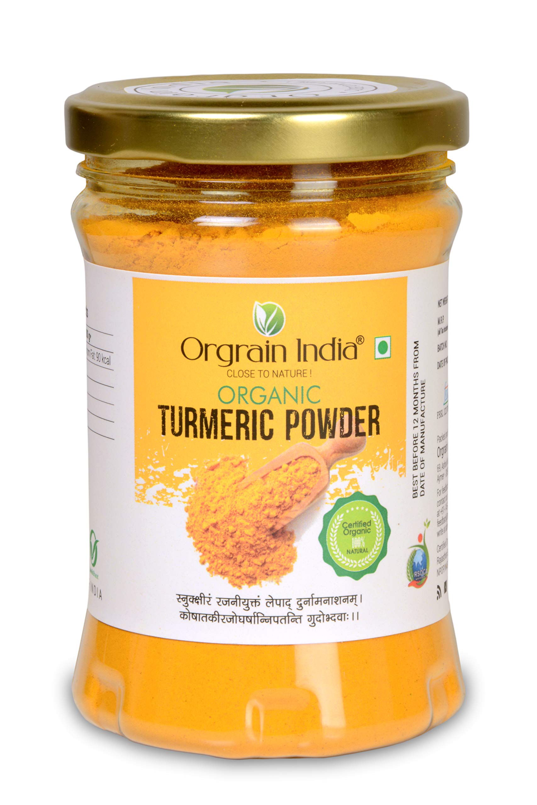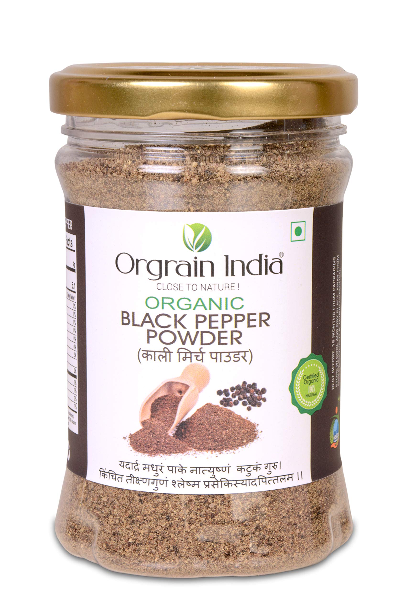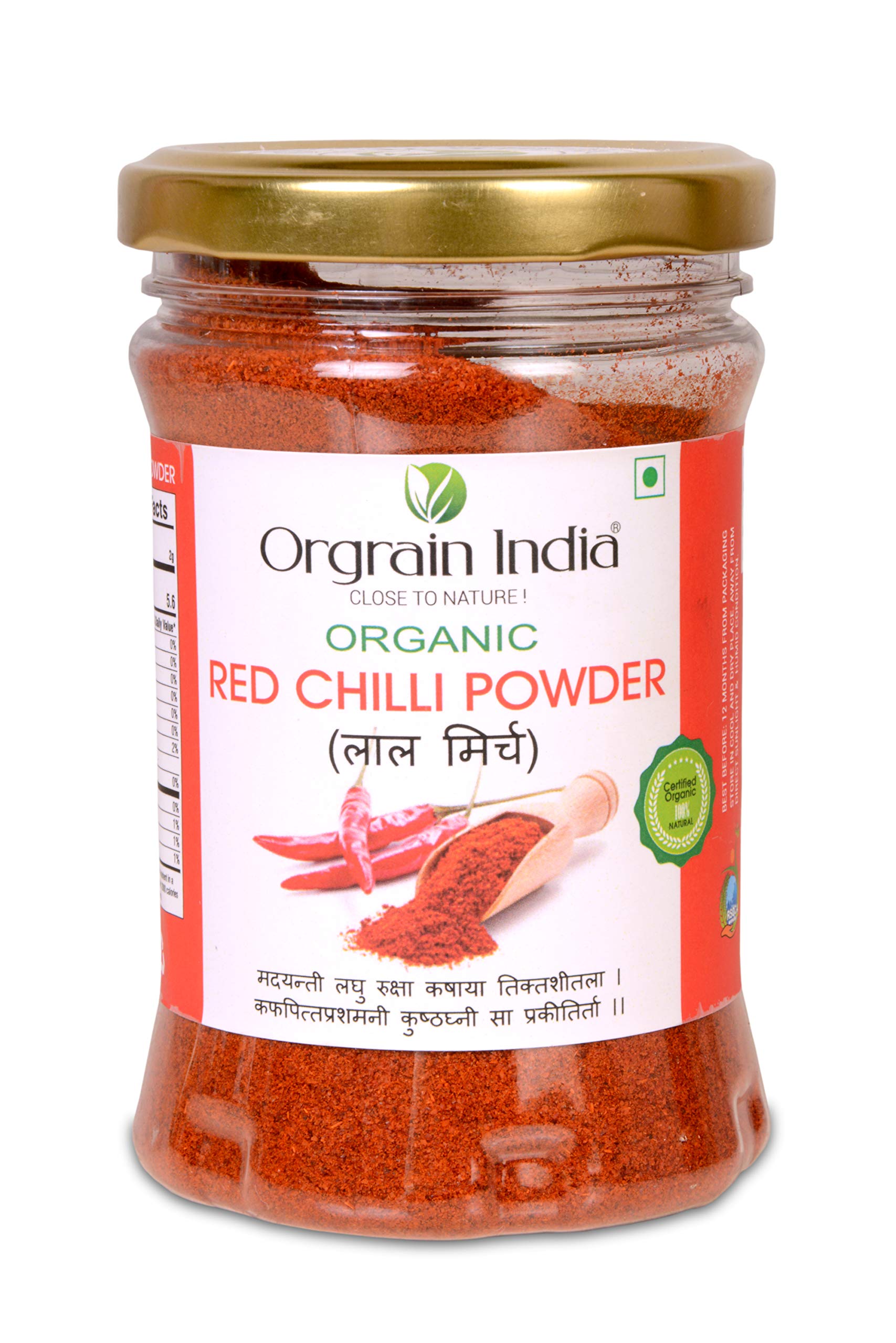 Orgrain India Organic Ground Spices Kit with Tulsi Green Tea (Turmeric Powder 150g Black Pepper Powder 150g Ginger Root Powder 100g Chilli Powder 125g)