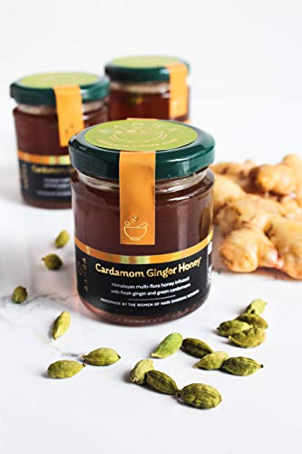 Himalayan multi flora honey infused with fresh ginger and green cardamom. Stir into a cup of tea or hot water. Drizzle on fresh fruit and yogurt for a delicious dessert.