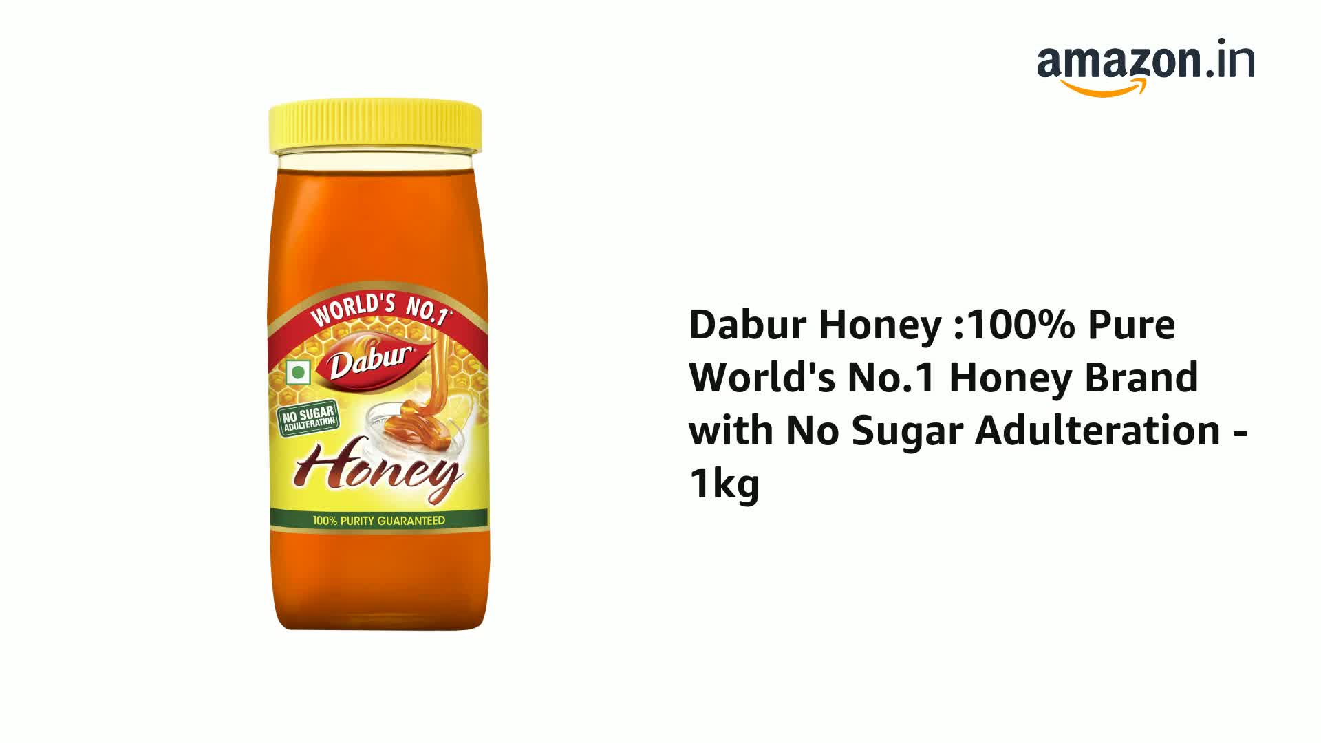 Do you want to boost your Immunity? Do you find it difficult to manage your weight? Do you want to give a healthy start to your day? Do you wish to improve your digestion and metabolism? If the answer to the above questions asked is YES then you should definitely include Dabur Honey as a part of your daily regime. Dabur Honey is entirely sourced from Indian beekeepers and conforms strictly with all the 22 parameters mandated by FSSAI (Food Safety and Standards Authority of India) for testing Honey. In addition Dabur Honey is also LCMS - MS tested for zero presence of antibiotics as further mandated by FSSAI. It is also IRMS tested for zero added sugar and SMR tested for zero presence of rice syrup. According to a recent clinical study people who consume Dabur honey with warm water every morning showed significant improvement in stamina digestion cholesterol level & waist/hip size hence maintaining a healthy lifestyle. For a healthy start to your day you can have Dabur Honey with warm water daily to see visible results. Buy now.