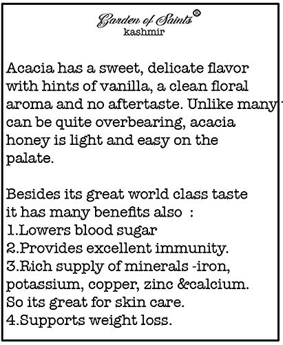 Package Content: 500 Gm of organic acacia Kashmiri single flower honey; Quantity: 500 Gm