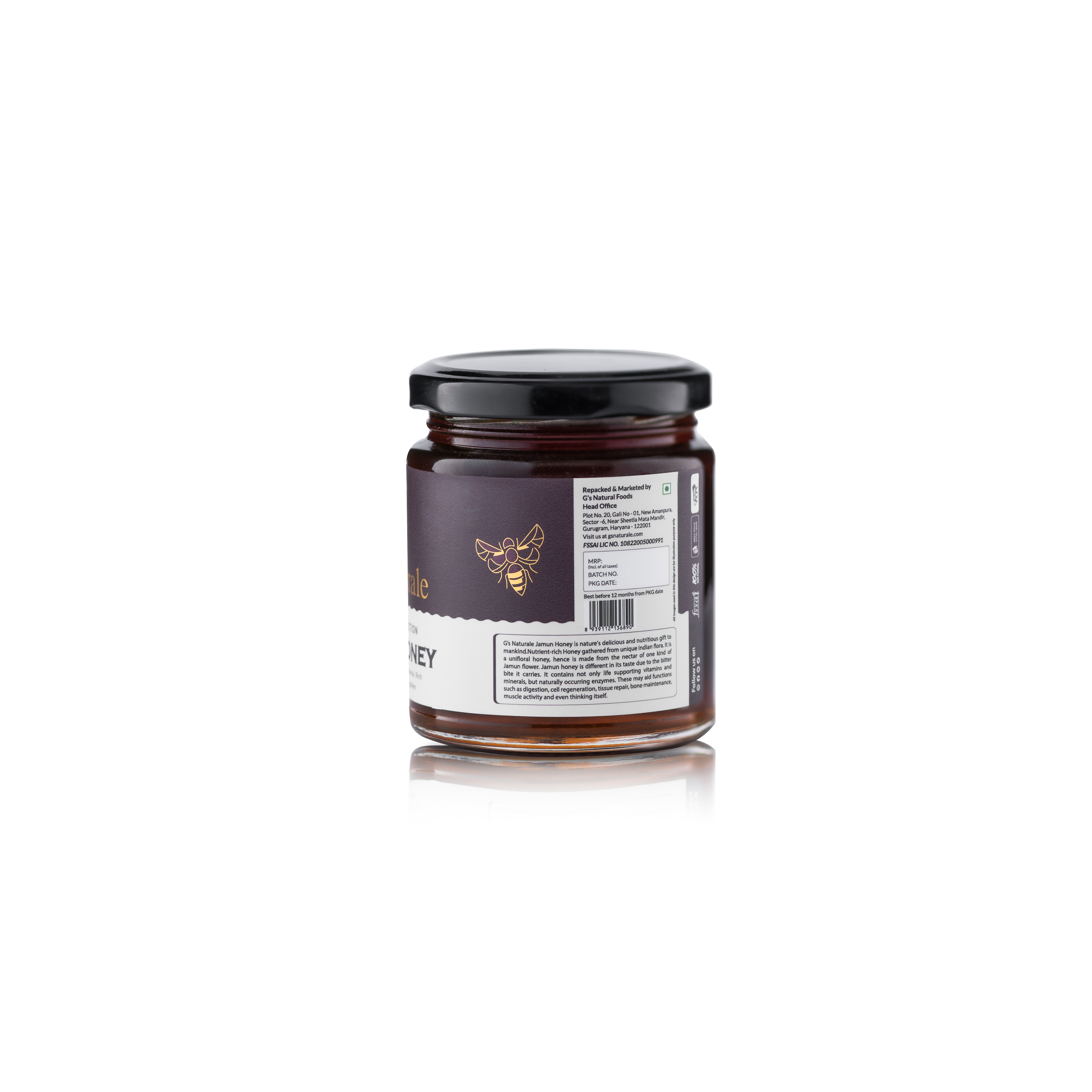 Born from the nectar of the Jamun flower, Jamun honey is a unifloral honey. Unifloral means that it is made only with the nectar of the Jamun flower. Jamun honey is unique as it is enveloped with a tint of bitterness. Its taste is its biggest surprise as it is a combination of sweet, sour, and bitter.