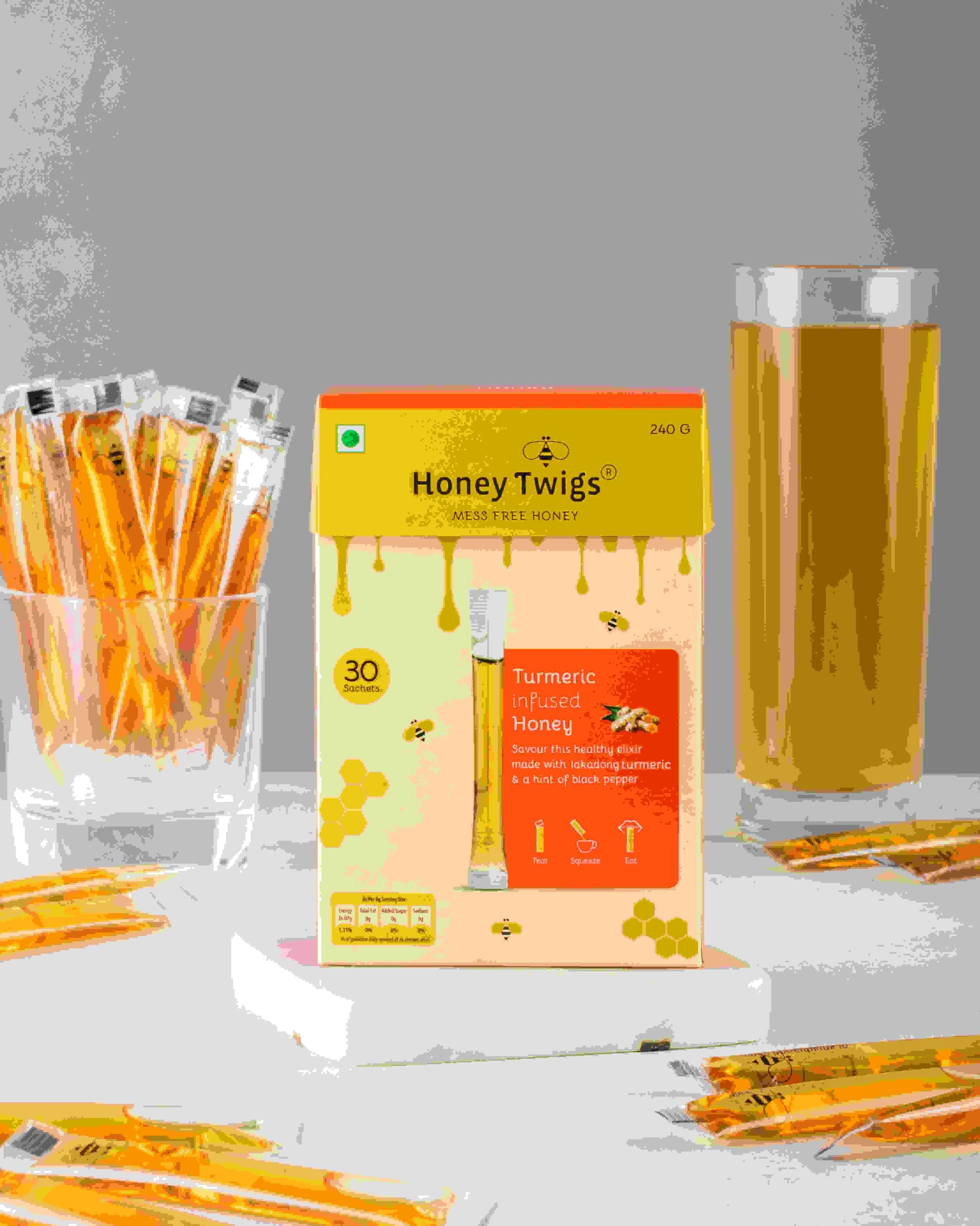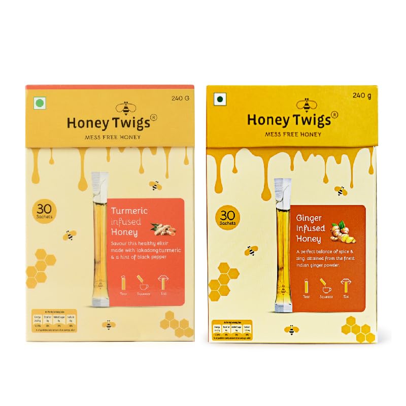 Honey Twigs Natural Honey | Turmeric Honey and Ginger Honey 480g(240g + 240g - 60 Twigs) | Infused with Natural Ingredients | Pure Honey | No Added Color | No Preservatives