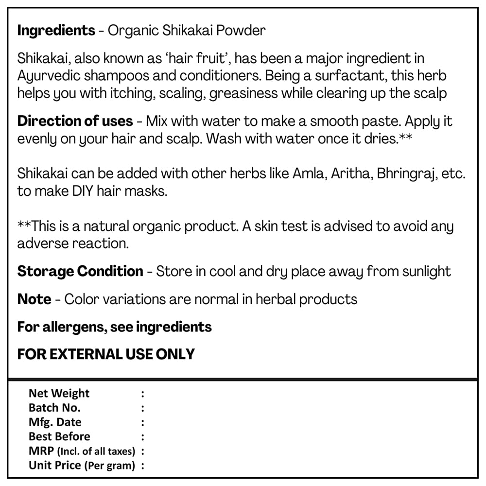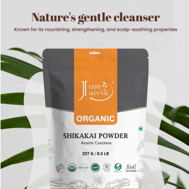 Just Jaivik 100% Organic Shikakai Powder - Certified Organic by OneCert Asia, 227 gms / 1/2 LB Pound / 08 Oz - Acacia Concina - (AN USDA Organic Herb)