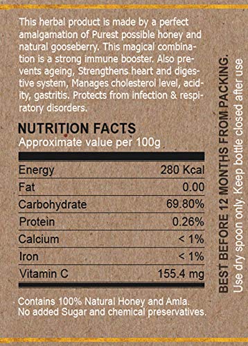 • This herbal product is made by a perfect combination of purest possible honey and natural gooseberry. Amla honey is a strong immune booster. Also prevents ageing strengthens the heart and digestive system manages cholesterol level acidity gastritis protec