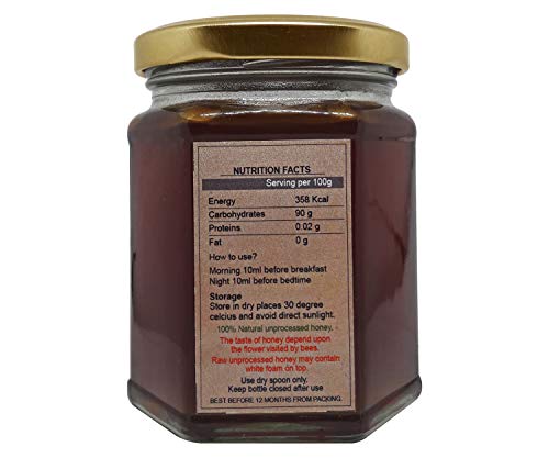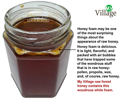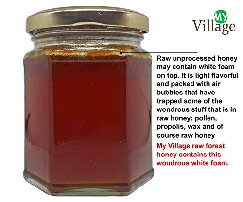 My Village Forest (wild bee) honey is 100% Natural organic product. The Quality and taste of honey depend upon the flower visited by bees. This in turn depends on pasturage. As bees feed on the nectar produced by the flowers. Raw unprocessed honey may contain white foam on top. It is light flavorful and packed with air bubbles that have trapped some of the wondrous stuff that is in raw honey: pollen propolis wax and of course raw honey.