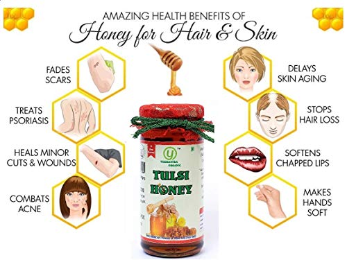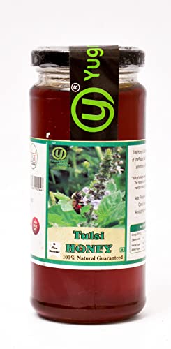MAKE Yugmantra Organic FoodsHONEY WITH TULSI A PART OF YOUR DAILY REGIME. Yugmantra Organic FoodsHONEY TULSI CONTAINS GOODNESS OF TULSI MIXED IN HONEY WHICH HELPS IN BOOSTING UP YOUR NATURAL IMMUNITY AND MAKES YOU STRONGER AND HEALTHIER FROM INSIDE. IN ADDITION HONEY CAN HELP YOU WITH SEVERAL OTHER HEALTH BENEFITS LIKE IMPROVEMENT IN STAMINA BETTER DIGESTION IMPROVED CHOLESTEROL LEVEL & REDUCTION OF WAIST/HIP SIZE. Yugmantra Organic FoodsHONEY TULSI CONFORMS STRICTLY WITH ALL REQUIRED NORMS FOR PURITY. Yugmantra Organic FoodsTULSI HONEY IS IMBIBED WITH THE GOODNESS OF HOLY TULSI A PLANT THAT IS REVERED IN INDIA. TULSI IS KNOWN TO HAVE MULTIPLE HEALTH BENEFITS. OUR HONEY IS A PERFECT BLEND OF HONEY AND TULSI TO GIVE YOU A DELICIOUS AND EVERLASTING TASTE. QUALITY : THE HONEY IS TESTED AND PACKED IN A FSSAI CERTIFIED FACILITY. AT THE QUALITY CONTROL LABORATORY EXTENSIVE TESTS ARE CARRIED OUT TO DETERMINE THE QUALITY OF HONEY AND TESTED FOR ANY IMPURITIES IN HONEY INCLUDING PESTICIDES AND ANTIBIOTICS. DOSAGE: Yugmantra Organic FoodsHONEY IS A NATURAL DIETARY AND HEALTH SUPPLEMENT AND THERE ARE NO DOSE RESTRICTIONS ON ITS USE. RECOMMENDED DAILY : ADULTS 1 - 2 TABLESPOONS DAILY AND CHILDREN (BELOW 12 YEARS) - 1 TABLESPOON DAILY. NOT RECOMMENDED FOR INFANTS BELOW 12 MONTHS OF AGE. KEY HEALTH BENEFITS: ALL NATURAL ANTI-BACTERIAL GOODNESS OF TULSI - HOLY BASIL RICH IN ANTIOXIDANTS HIGH IN VITAMIN & MINERALS PROBIOTIC FRESH FROM BEEHIVES BOOSTS IMMUNITY NO ARTIFICIAL COLOR / FLAVOUR HEALTHY & DELICIOUS