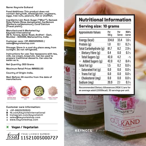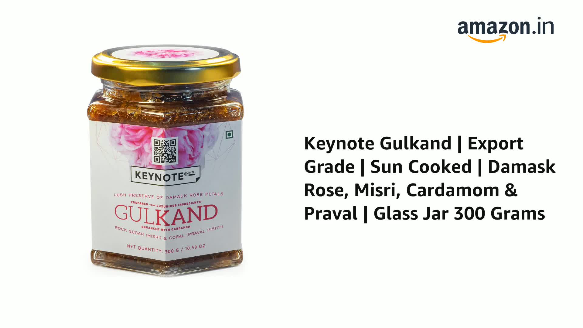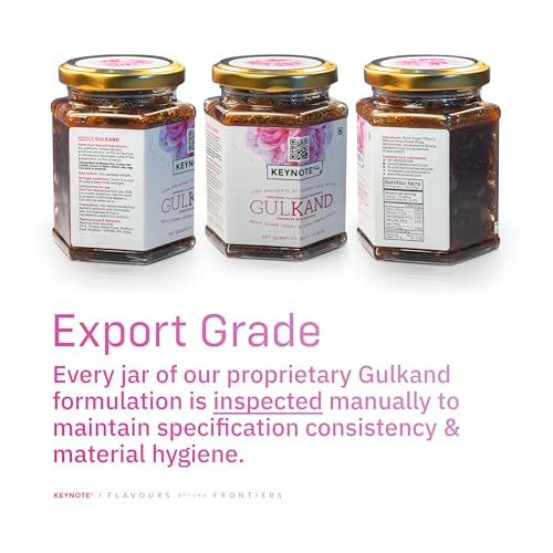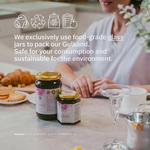 Keynote Gulkand | Export Grade | Sun Cooked | Damask Rose, Misri, Cardamom & Praval | Glass Jar 300 grams