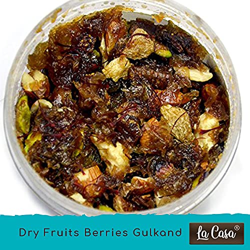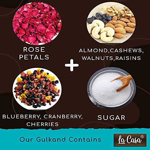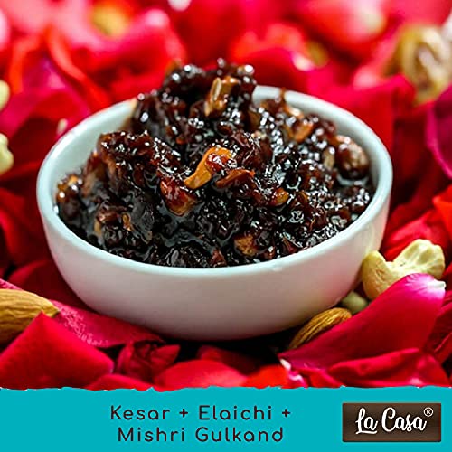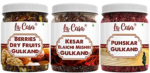 La Casa Pushkar All 3 Flavors Gulkand | Combo Pack of 3 | Plain+Dry Fruits & Berries+ElaichiSaffron & Mishri Gulkand Combo | 3x400g |