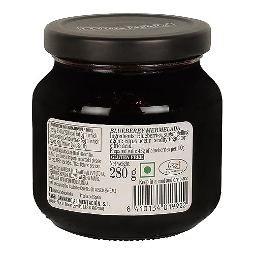 Flavour: blueberry add more texture to the taste of your desserts with the La Vieja Fabrica. Enjoy La Vieja Fabrica blueberry preserve. The product of Spain- made with 100 percent natural fruit - made in traditional style. A product with rich fruit flavours and plenty of bites vegetarian-friendly and vegan-friendly. The refreshing taste of the marmalade adds a punch to your dessert.