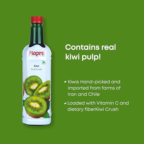 This distinctively flavoured green fruit with teeny black edible seeds has potassium vitamin C and A. It is used in chutneys salads soups and is a great accompaniment with yogurt tarts ice-creams and cakes. So check out for whole kiwi pulp. Make a lip-smacking milkshake or a drink blend one Mapro part kiwi crush to four parts chilled milk or water.