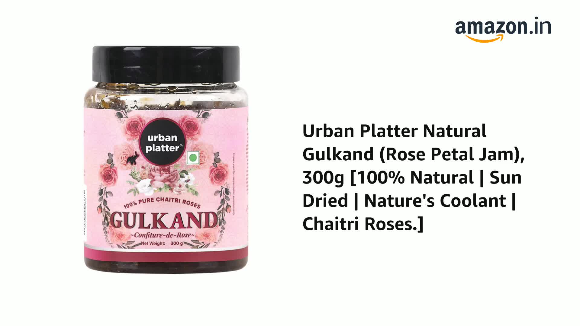Urban Platter Natural Gulkand (Rose Petal Jam) 300g [100% Natural | Sun Dried | Nature's Coolant | Chaitri Roses.]